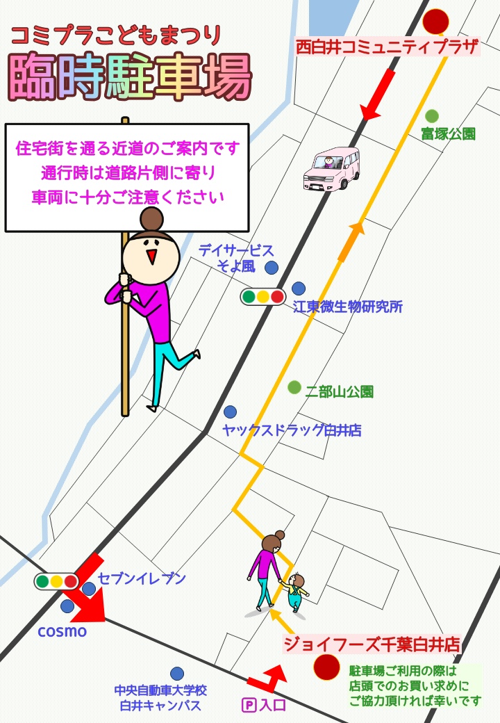 臨時駐車場として「ジョイフーズ千葉白井店さま」にご協力いただいておりますので